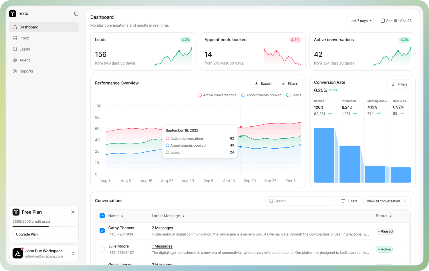 Texto AI boosts lead engagement, schedules meetings, and strengthens customer relationships around the clock.