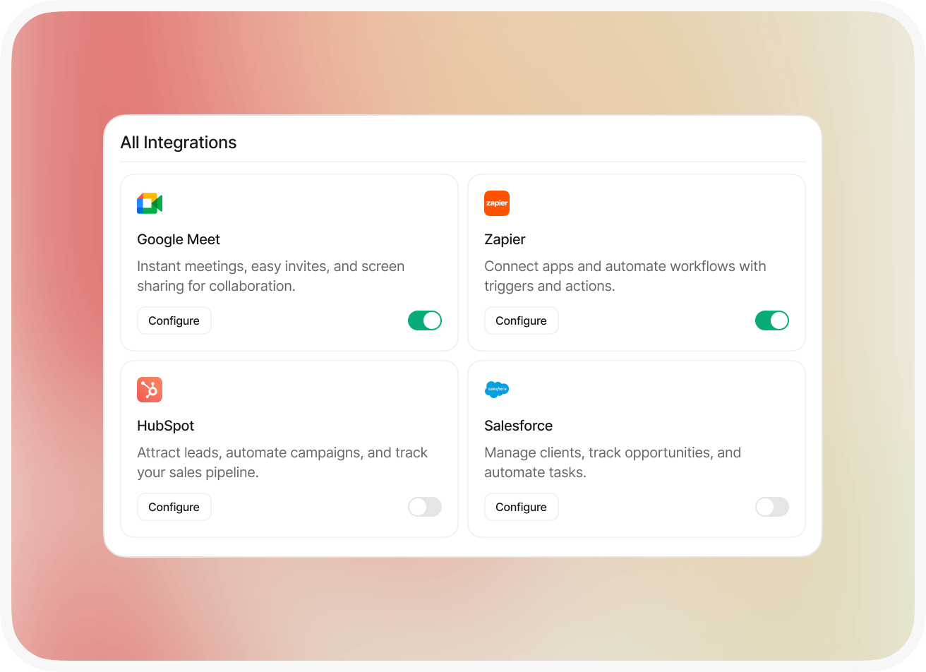 It takes less than 10 minutes. Just connect your lead source, add your booking link, upload your company info, and Texto begins booking meetings instantly - no technical skills required!